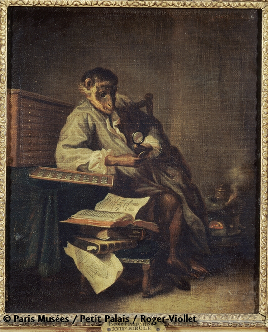 来自小皇宫-巴黎市立美术馆的18世纪的《猴子古币家》有模有样,感觉像是看到了自己……
