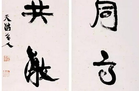 乾嘉以来碑学大兴,康有为在民国书法史上是有名的大家,自成一派世称“康体”,他的书法理论著作《广艺舟双楫》继阮元、包世臣之后更将碑学推向顶峰,然他在“尚碑”的同时将有唐数百年来书家创作一笔抹杀,未免偏激。观其字,长撇大捺,圆转浑厚,结体不似晋唐欹侧绮丽,大量的飞白尽显碑法的劲涩,《石门铭》类的长画逸宕显得气势开张,雄厚逼人,饶有古意。
