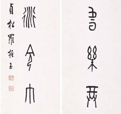 罗振玉《甲骨文七言联》纸本立轴,132×31cm×2