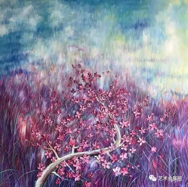 蒋林 《桃花》丙烯油画 150x150cm 2018