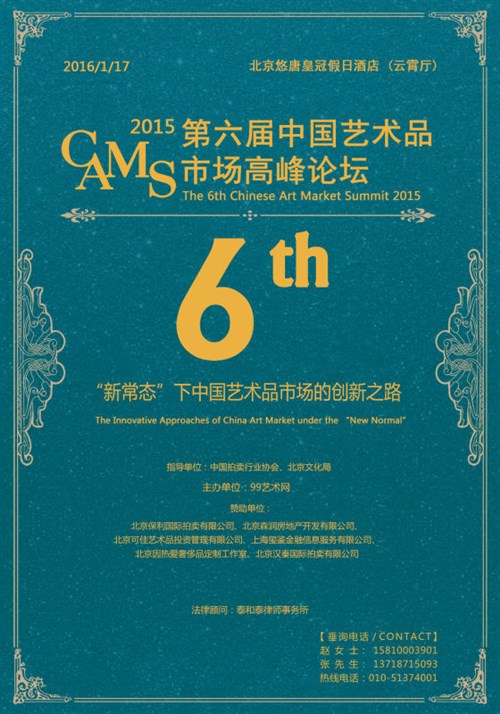 第六届中国艺术品市场高峰论坛(CAMS2015)即将启幕