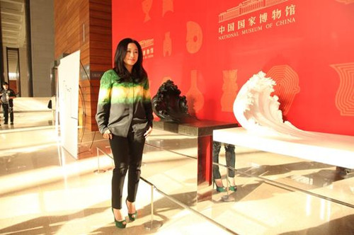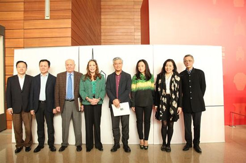 新闻发布会现场,从左至右:PierreLevai(马乐伯画廊负责人)、MarciaLevine(马乐伯画廊项目总监)、中国国家博物馆副馆长陈履生、艺术家艾敬
