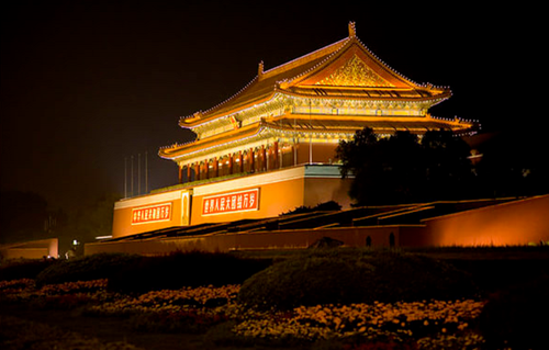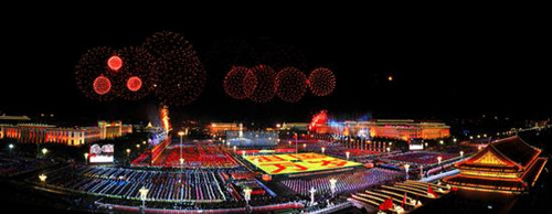 自此,民国时期的华丽布景基本上都被改换。天安门、天坛祈年殿、北海公园白塔、十大建筑、自然风光、中式园林建筑等为图像的布景在这一时期相对较为常见。
