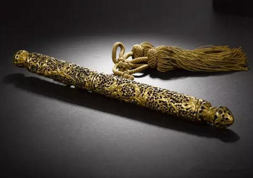 西藏15世纪铁鋄金信筒