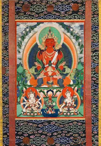 清乾隆无量寿佛长寿三尊唐卡(局部)150×100cm
