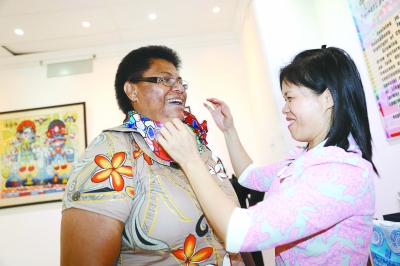 开幕式上,农民画画家王汉池还用山歌的形式把他的4幅作品唱了出来,赢得现场观众的阵阵掌声。路西安娜·弗托菲力表示,画展让斐济人民更多地了解中国优秀文化、开阔了眼界,同时显示出中斐两国文化交流的不断巩固和发展。