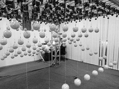 浮球矩阵是新一代的展示设备,即在每个球的上方有钢丝线吊挂,悬挂的“球”外形可以根据具体需要改变,内部可以安装LED灯。浮球矩阵被誉为“动态的雕塑”,可以跟随不同的音乐变换出不同的造型。球的个数越多,造型变换带来的震撼效果越明显,但成本也就越高,优爱宝公司设计的浮球矩阵是基于模块化分布式控制原理,大大减小了应用成本。据悉,浮球矩阵将会在本次上交会现场展出。