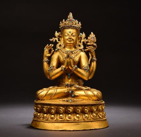 四臂观十四至十五世纪 铜鎏金音像 H:18.5cm