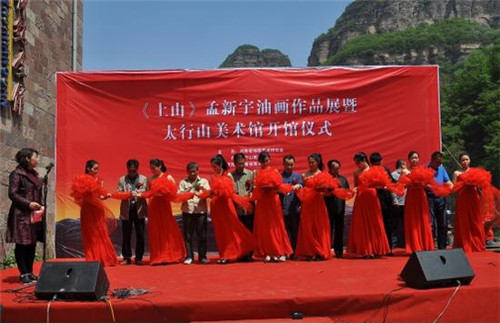 八百里太行在林虑山为世人呈现出一副巍峨画卷,百里大峡谷吸引了大批艺术家驻足于此。林州太行大峡谷素有“太行之魂”、“北雄风光”之美誉。近年来,河南省林州市委、市政府,石板岩镇党委、政府抓住建设世界人文山水城市的机遇,以繁荣林州市写生资源为宗旨,精心筹建,于太行山石板岩镇结合当地特殊的地域风貌及风土人情成功打造了“太行山美术馆”。2016年4月21日迎来太行山美术馆的开馆及美术馆开馆承办的第一个展览“上山”——孟新宇油画作品展。