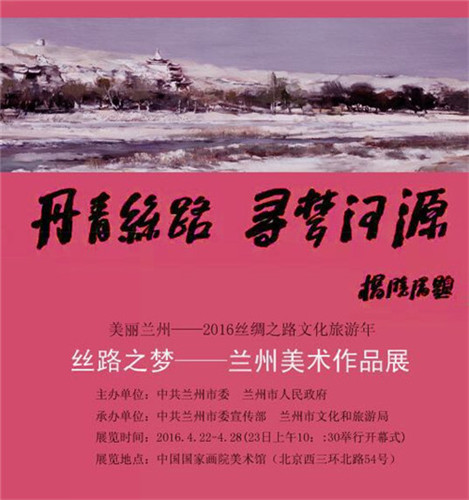 正值首都北京春暖花开之际,“美丽兰州——2016丝绸之路文化旅游年”主题宣传活动启动仪式暨“敦煌行-丝绸之路国际旅游节”新闻发布会在人民大会堂隆重举行。作为丝绸之路文化旅游年系列活动之一,由中共兰州市委、兰州市人民政府主办,中共兰州市委宣传部、兰州市文化和旅游局承办的“丝路之梦——兰州美术作品展”于2016年4月23日在中国国家画院美术馆如期开幕。此项活动是中共兰州市委、兰州市人民政府文化立市、旅游带动经济腾飞的重大举措。伴随着“一带一路”战略构想的逐步实施,我国对外开放的地理格局发生重大调整之际,兰州处于中西部地区核心位置,将赢来新一轮的发展机遇期,文化作为沟通中西的桥梁和纽带,总是扮演者先行者的角色。