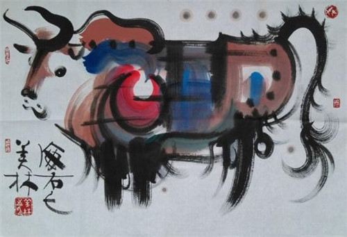 韩美林《牛》设色纸本、镜心尺寸:46x69cm