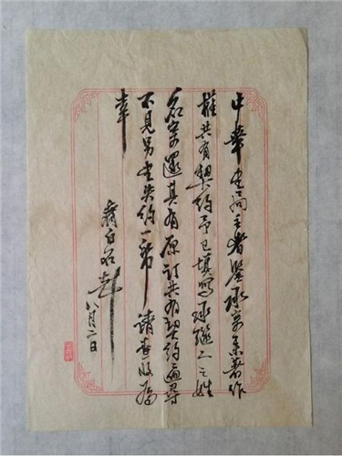 此信札是齐白石于8月2日寄给中华书局关于著作权共有契约的有关内容,“齐白石”出生在湖南省长沙市,中国,汉族,是中国著名国画家,书法家,教育家,也是一位杰出的篆刻艺术家。