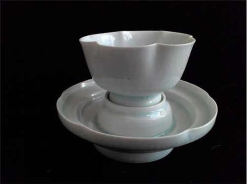 此套南宋影青葵花口盏杯属江西景德镇湖田窑产,杯及盏托均为六瓣花口,呼应对称。胎精细雪白。釉蕴润、晶莹剔透,釉层薄,胎体透光。釉色白中闪青,修胎匀薄,积釉较厚,釉色呈湖水般青绿色,精细透彻。足有垫圈烧痕。釉下的气泡大、清澈、疏朗。