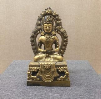 4月28日,广东博物馆将举办宗教文物展,展出明代铜鎏金释迦牟尼佛。 蔡敏婕 摄