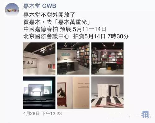 近日,嘉木堂官方发布消息称,基于经营方面的重大决定,嘉木堂将不再对外开放。同时宣布,伍嘉恩女士将联手中国嘉德举办“嘉木万重光”专场,37件套明式家具精品将以无底价形式于5月14日晚拍卖。