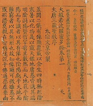 南宋(12世纪)《一切经》又称《大藏经》。醍醐寺藏宋版《一切经》现存六千零九十六帖,其中除《大般若经》六百五十五帖为开元寺版,其余《一切经》皆为东禅寺版。每函约十帖。经书刻成每行十七字格式的六行折帖,以绀色的纸张装订。这种每行十七字和折帖的形式,成为后来宋、元、明、清各朝官、私版本大藏经的规范格式。