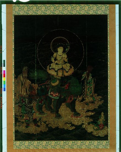 本次展出的《文殊渡海图》就是日本镰仓时代此类题材的代表作品,画中的于阗国王,和五代后唐时期所作的莫高窟220窟相同图像几乎一致。