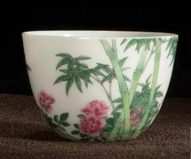 清雍正珐琅彩月季绿竹诗意小杯
