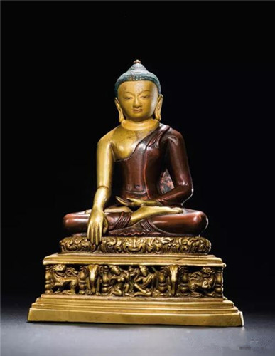 帕拉11世纪至稀至珍双色铜合铸释迦牟尼成道像