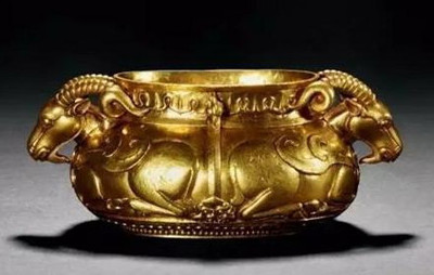 金质“大清乾隆年制须弥福寿之庙”高浮雕双卧羊耳尊