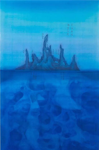 徐:其实从内在结构和观念上说,早期和现在的作品是一脉相承的。我的作品虽然有“叙事性”的特征,但“叙事”的属“意象”,只不过过去沉迷在内景中,而今天重新回到“自然”中。前后对比,你会发现我的作品始终有一个“中界”。九〇年代初,这个“中界”是“帷幔”或者“屏风”,类似戏剧性的间离效果,隔开了内和外。作为一个视角的窥视者,因为是局外人,你被排斥在“帷幔”之外,不能够深入到场景的内部,会有一种绝望。当从二〇一二年以后,新的系列“海”与“天”换了一个豁然开朗的境界,但仍然有一个中界在那里,变成了“上”和“下”,许多真相是湮没在水中的深渊里,而暴露出来的又不是真实的景观,而是文本,在我的世界观中,这个世界仍然是“虚幻”的。不管早期还是现在,“隐”和“现”一直是我探讨的主题,立足在这两个世界之间同时关照,平衡矛盾的或者是两极的部分,最后用辨证的方法将它们统一起来。这是中国人“中庸之道”的思想方式,在今天尤其有意义,如此,我们才能进一步调和文化上“东方”和“西方”,“古代”和“当代”的关系。
