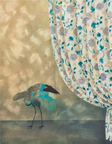 徐:中国古代美学讲究曲径通幽,《文心雕龙》里就说,“秘响旁通,伏彩潜发”,欲说还休会给人以意境,给人以想象。所以,中国传统的文赋传统,使许多主题通过隐喻的方式表达出来,对世事的感叹如此,对个人境遇的表白也是如此。比如用“白驹过隙”象征时间的飞逝,或者屈原用山间兰草比喻自己的命运。在我的画中没有出现人,如果有人的气息,也就是这些被人豢养过的动物,流离失所、魂不守舍的样子,它们其实是有人格的,在每张不同的画里,它们有不同的意思。《茫》的主题是情色。中国人表现男欢女爱,形式上不是那么直接,它会以万物隐示天地之欢。《茫》中出现的符号和这有关系,如果用精神分析的理论说,也是潜意识的表面化。在后来的类似题材中,莲蓬换成绣鞋,意图还是一样。而《夕舞》表现的是一种情绪,夕阳残照,仙鹤并不像徽宗《瑞鹤图》那样恢宏大气,而是蜷缩挣扎成一种舞姿,可能这是当时惘然情绪的一种表露吧。