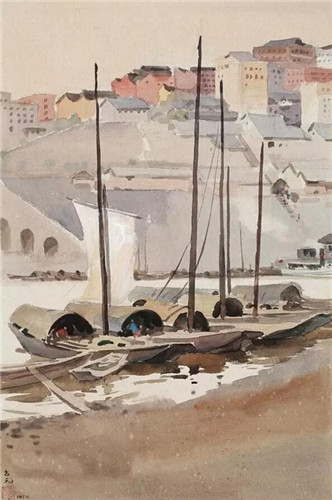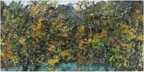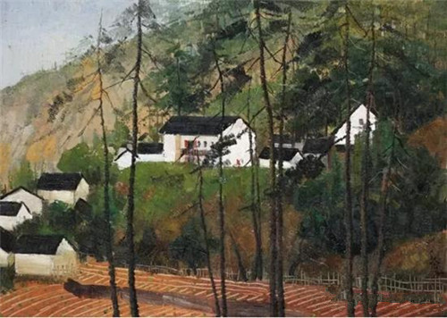 从上世纪70年代中期开始,吴冠中以旅行写生的方式进行创作,完成了大量风景画。在一幅幅不同地域、不同情调的油画风景中,他的目标越来越清晰。他依仗对视觉形式特殊敏感的眼力,大胆截取最具形式感的景物,纯化景物本身的形体结构和色彩关系,突出自由多变的笔触和色调的表现性,这使他的作品显得单纯而多变,并且总是充溢着生命的动感。从1975-1978年间描绘鲁迅故里和青岛红楼诸作,到80年代的《高原人家》、《中流》、《家》、《鱼乐》,我们从这些作品里感受到一种音乐性,那是由点、线、面和色彩构成的节奏和韵律。