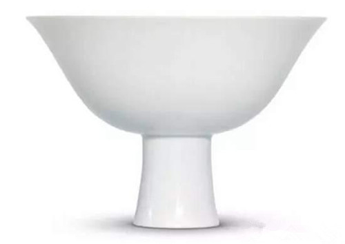 明永乐甜白釉暗花八吉祥高足盌直径15公分