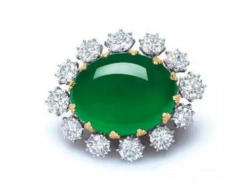 天然翡翠蛋面吊坠/胸针配以钻石,镶铂金及金