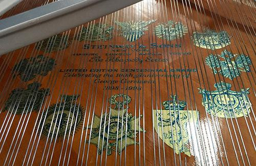 据斯坦威公司档案记录,本拍品作为斯坦威钢琴的样板曾经在纽约著名的斯坦威大厅展示,并多次在美国巡展。此钢琴低音区雄伟宽广,高音清澈甜美,触键反应灵敏。该琴还配有现代化钢琴自动演奏装置设备,它适合各种场合在没有钢琴家演奏时也能够欣赏到美妙的琴声。琴上有设计师弗兰克Pollaro的白骨材质镶嵌签名,音板上琴及内侧,还有斯坦威公纪念乔治·格什温百年诞辰及蓝色狂想曲的限量标志和纪念铜牌。这一款琴是可遇不可求极具收藏价值的艺术钢琴精品。