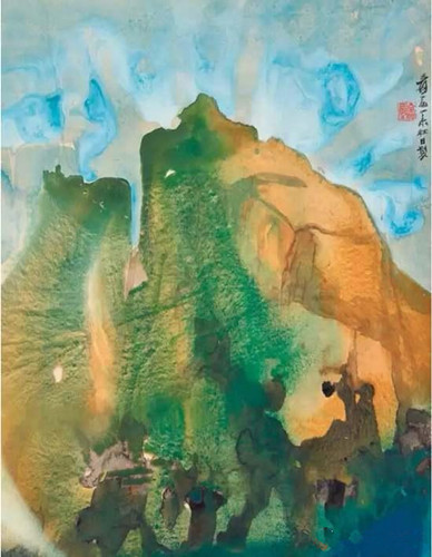 排在第6号的是一幅青绿泼墨《加州夏山》,这是张大千1967年的作品,拍前九备受瞩目,加上张大千之前曾创下不菲的纪录因此更是格外看好。这件作品最终以3932万港元成交。随后,赵无极的《红色家园》也以844万港元圆满交卷。