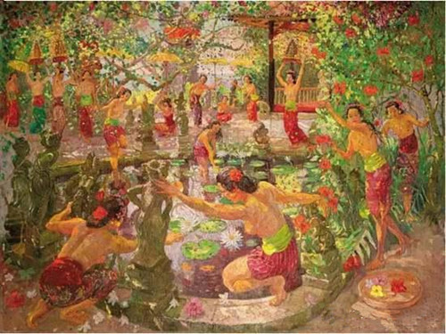压轴的两件拍品,一件是在印度尼西亚峇里岛创作的比利时艺术家勒迈耶(Adrien-JeanLeMayeur)的《WomanAround》,是峇里岛女子欢庆丰收的舞蹈场景,象征着收藏家与佳士得一路携手丰收喜庆,红红火火走向未来,最终以3036万港元获得好成绩。第30号拍品,是估价达7800万港元的一对令人惊艳的红宝耳钉,最终以8972万港元的成交宣告香港佳士得30周年庆典拍卖结束,并以收获6.3亿港元而圆满庆生。