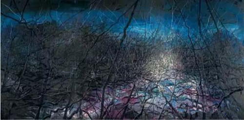 《不可思议的夜(07-18)》创作于2007年,是曾梵志“乱笔”风景画系列的经典代表,源自重要私人收藏。作品曾参展于2009年美国纽约阿奎维拉画廊举办“曾梵志”个展、2010年德国奥斯特菲尔登举办的“曾梵志:面具的每一个标记”展览。