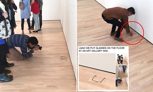 生活和艺术的区分是什么?上周在美国旧金山现代艺术博物馆举办的一场展览中,摆在地上的一副眼镜引起了围观。