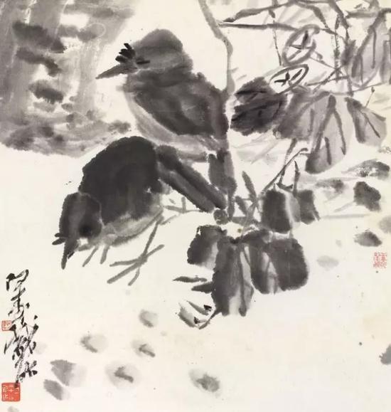 潘天寿(1897-1971) 双雀 纸本立轴 鉴藏印:芦芒鉴藏 尺寸:44×42cm