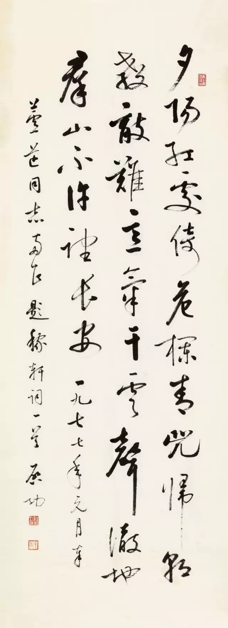启功(1912-2005) 行书宋词 纸本镜心 1977年作 备 注:芦芒上款。 尺寸:96×35cm