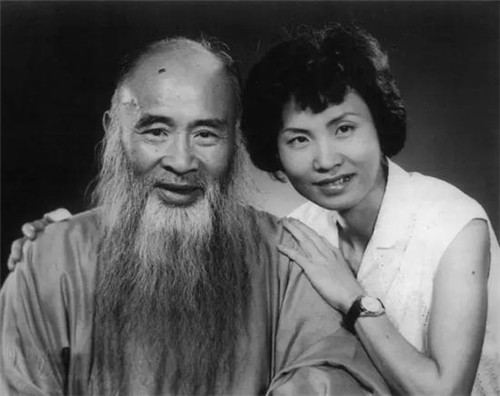 1963年,张心瑞获准赴港探望父亲大千先生。此为心瑞与父亲摄于香港东方艺术相馆