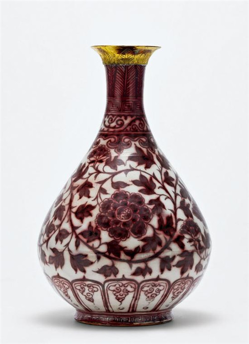 明洪武 釉里红缠枝牡丹纹玉壶春瓶