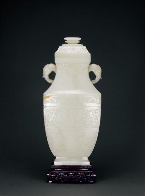 清乾隆白玉饕餮纹双象耳方壶