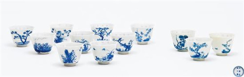 清康熙青花十二花神杯一套