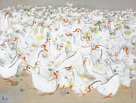 其中,以咨询价上拍的《桂林》以2300万高价成交;1993年创作的以鹅为题材的《乡音》以2127.5万成交;创作于1989年的两幅《塞纳河桥》和《塞纳河》则分别以1035万元和667万元成交。水墨部分,除1988年作《巴蜀山水》遗憾流拍,其余6件均高价成交。