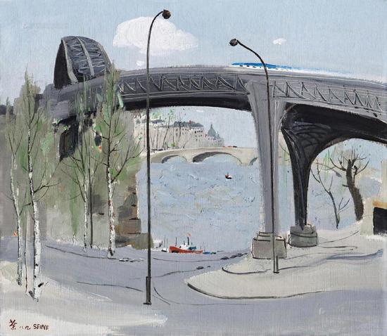1989年作 塞纳河桥 布面油画