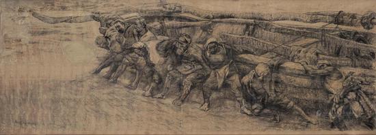 1981年作 《黄河船夫》素描创作 纸本素描