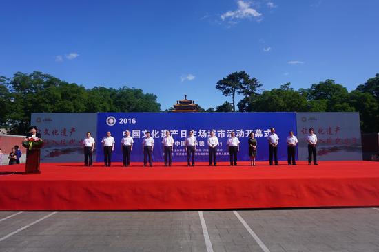 今年文化遗产日的主题是“让文化遗产融入现代生活”。上午,主场城市活动开幕式在普宁寺广场举行。开幕式由承德市市长常丽虹主持,承德市委书记周仲明致欢迎辞,河北省副省长姜德果讲话,河北省文物局局长张立方向普宁寺僧人志愿消防队授旗,与会领导向长城保护员代表颁发了工作证书,向10位社会力量参与文物保护典型事例代表赠送锦旗,国家文物局局长刘玉珠讲话并宣布文化遗产日主场城市活动启动。
