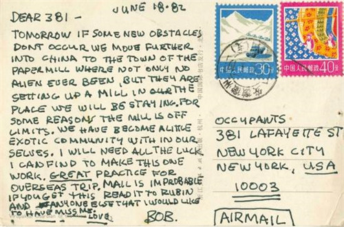 劳申伯格于1982年的中国之旅途中寄给朋友的明信片。图片:致谢尤伦斯当代艺术中心