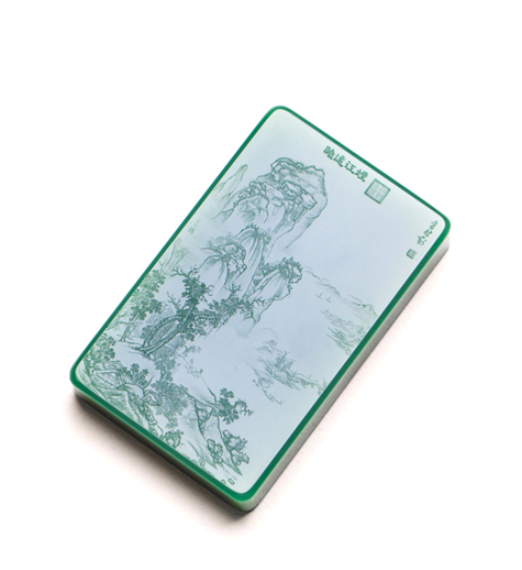 要求:必须鸭蛋青无结构阴刻山水。显工、显料、显文化。
