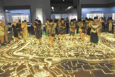 市民参观成都历史文化陈列厅(民俗篇)的成都老地图