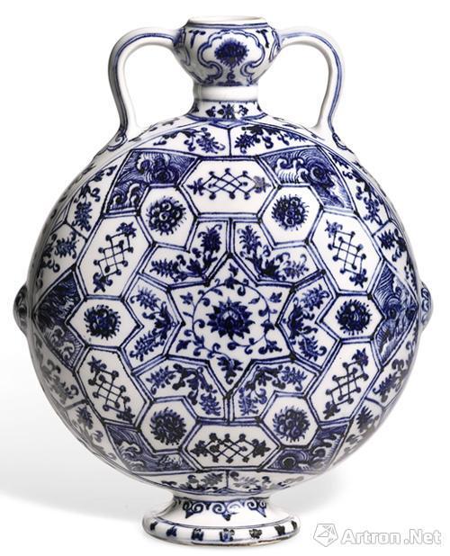 明永乐青花花卉锦纹如意耳扁壶 1.1052亿港元成交