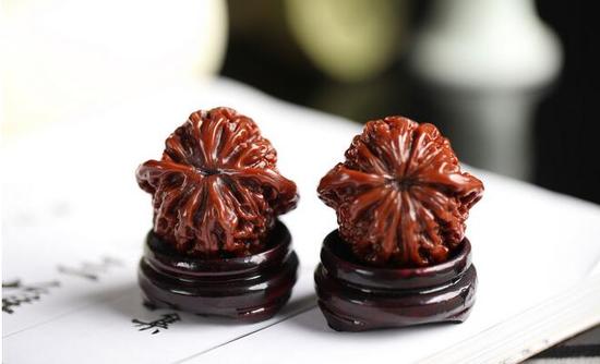 核桃在文玩行当中是一个小小的收藏品种,行内人称为文玩核桃。随着长时间的把玩,核桃色泽逐渐变红,最终呈现如玛瑙般的颜色,因此便成为人们争相追逐和收藏的对象。