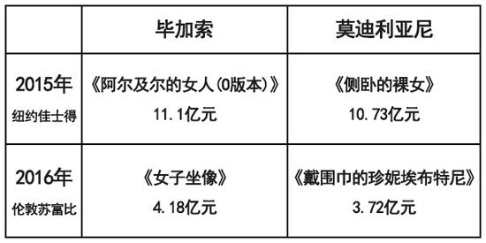 最近两年毕加索和莫迪利亚尼过亿画作对比